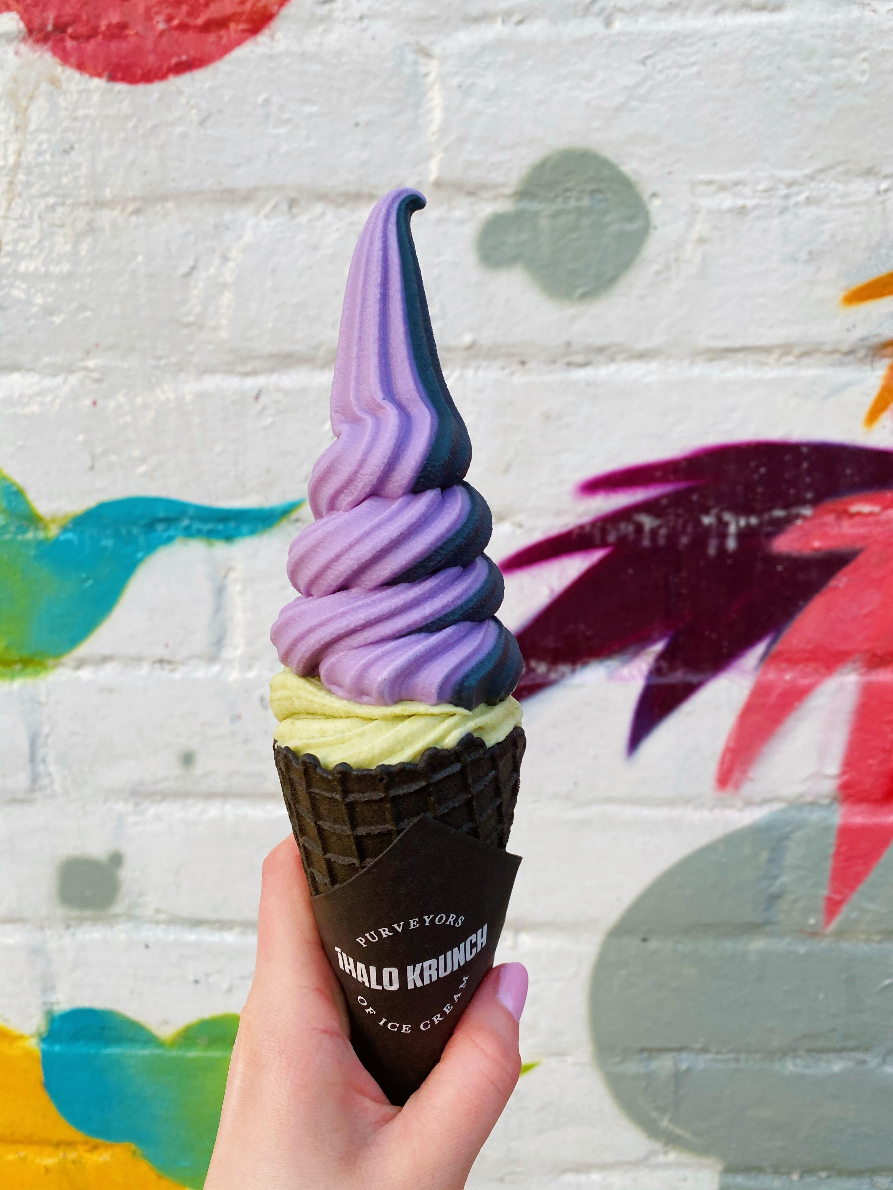 iHalo Krunch – This is arguably the most unique ice cream cone you’ll try in Toronto! iHalo’s unique, Asian-inspired soft serve flavours and charcoal cones make them a must-try for anyone who’s tired of the same old chocolate, vanilla and strawberry. Their signature black waffle cones (naturally coloured via activated charcoal) are baked in-house daily, and they’re so good – definitely the best-tasting cones I’ve ever tried! Ice cream flavours include ube, matcha, charcoal coconut, pandan, strawberry milk, vegan mango, and Madagascar vanilla bean. And for the indecisive like me, fear not: you can get a twist of two, three, or even four flavours! My favourite is the ube, but charcoal coconut comes in a close second. iHalo Krunch has three locations in Toronto (Queen West, High Park and The Danforth) and one in Wasaga Beach.