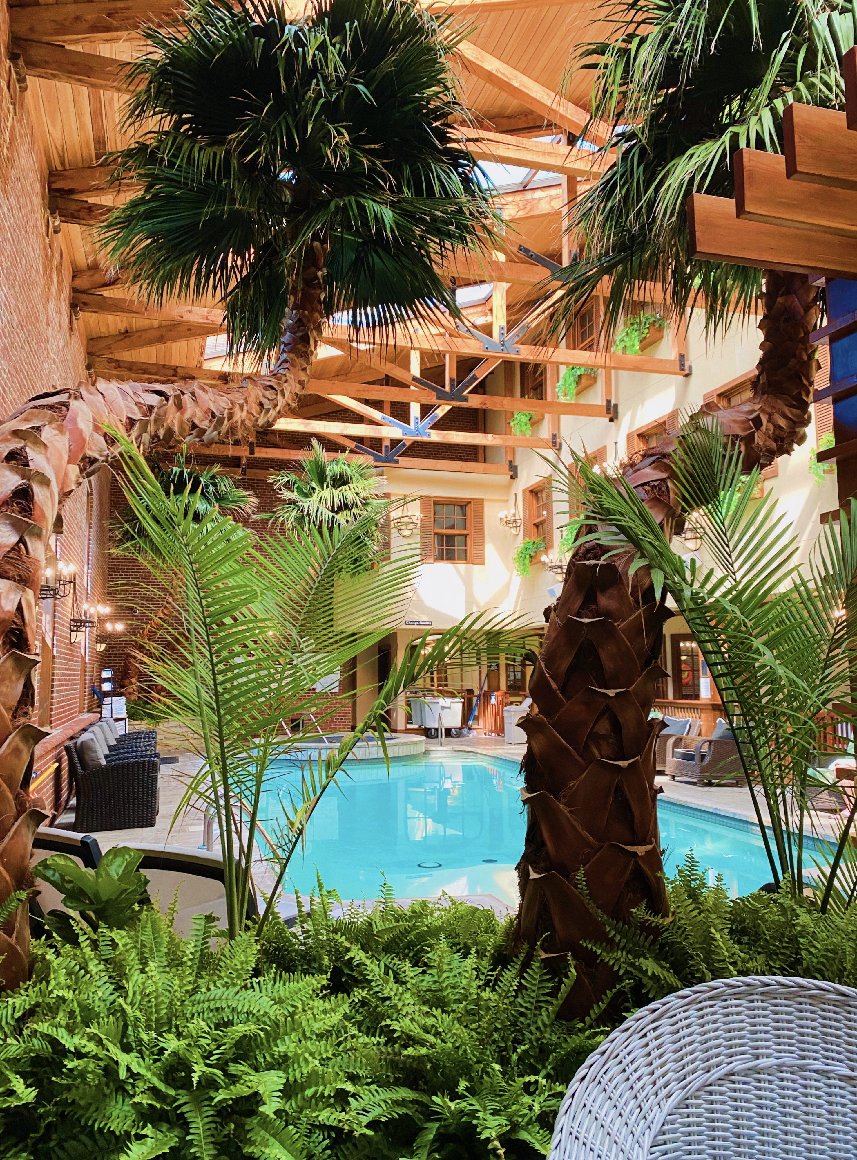 After lunch, we went to check out the indoor pool area, which consists of a large saltwater pool and hot tub. The space is beautiful! From the tall ceilings to the skylights to the tropical greenery, they’ve done a great job at bringing the outdoors in. Unfortunately there was a large group monopolizing the hot tub, so we didn’t get to try that out (why does that always happen!?) but we really enjoyed the saltwater pool, which was heated to the perfect temperature.