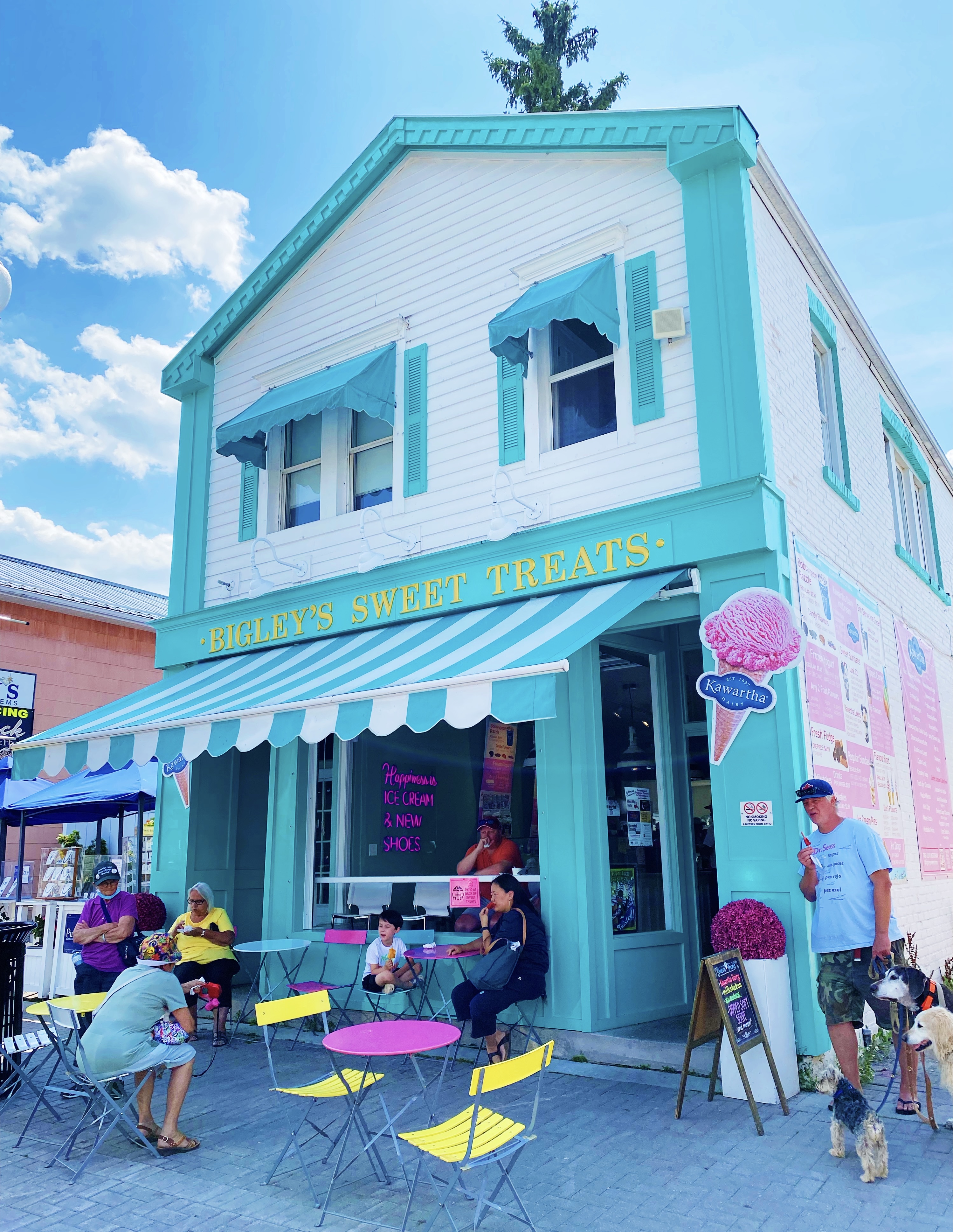 Bigley’s Sweet Treats – With its pinstriped awning, pastel palette and neon patio furniture, this retro-chic ice cream parlour is hard to miss! Tania and I shared the Lock 32 sundae, which consists of vanilla soft serve with hot fudge, whipped cream, brownies, and the must-have cherry on top. It was SO good! They also (appropriately) serve various flavours of Kawartha Dairy.