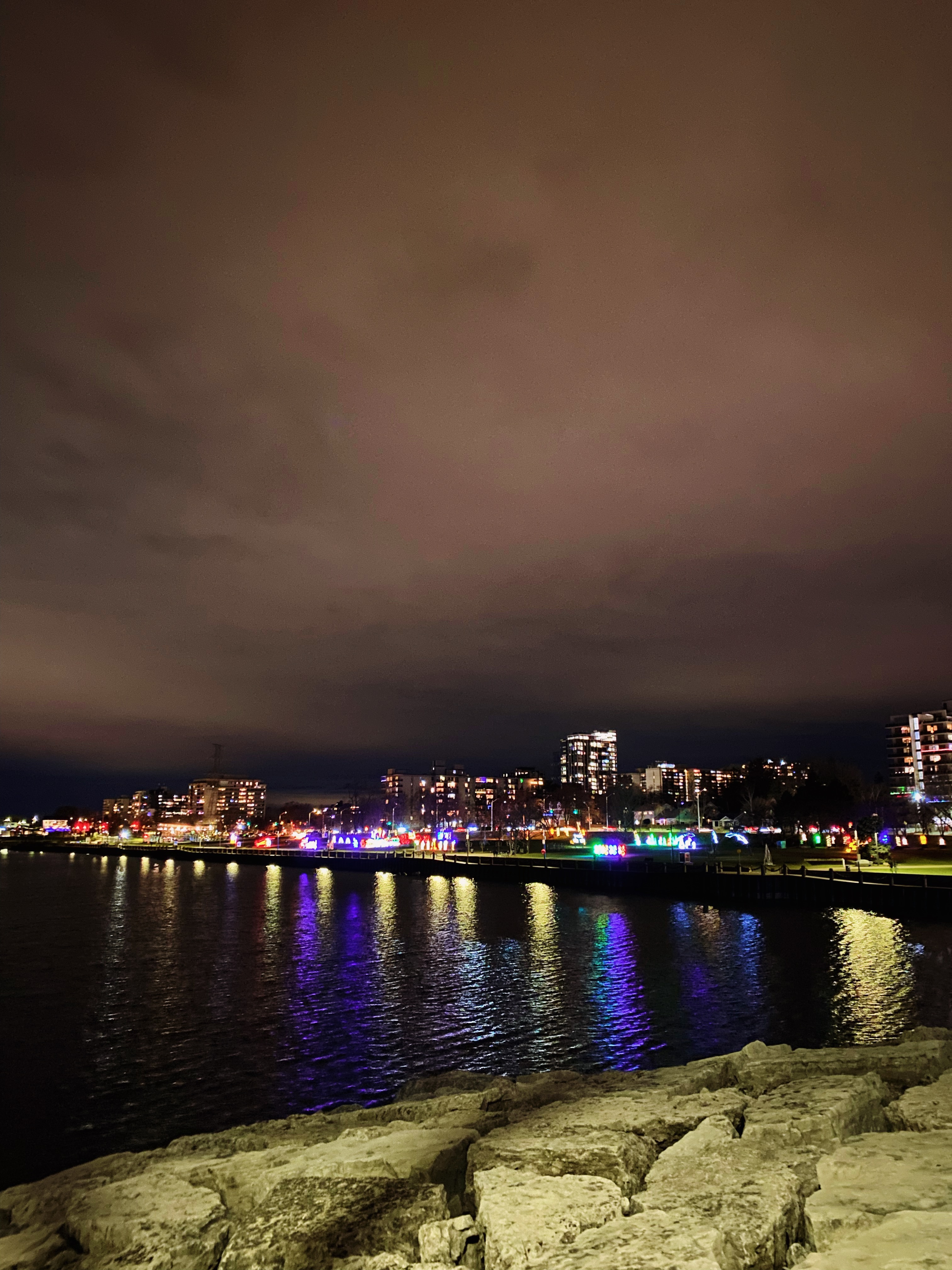 After admiring the installations throughout the park, be sure to stroll down to Brant Street Pier. You can’t really get the full effect from this photo (my iPhone is terrible at night photography!) but you’ll get a beautiful view of all the installations, lighting up the waterfront in a rainbow of colours.