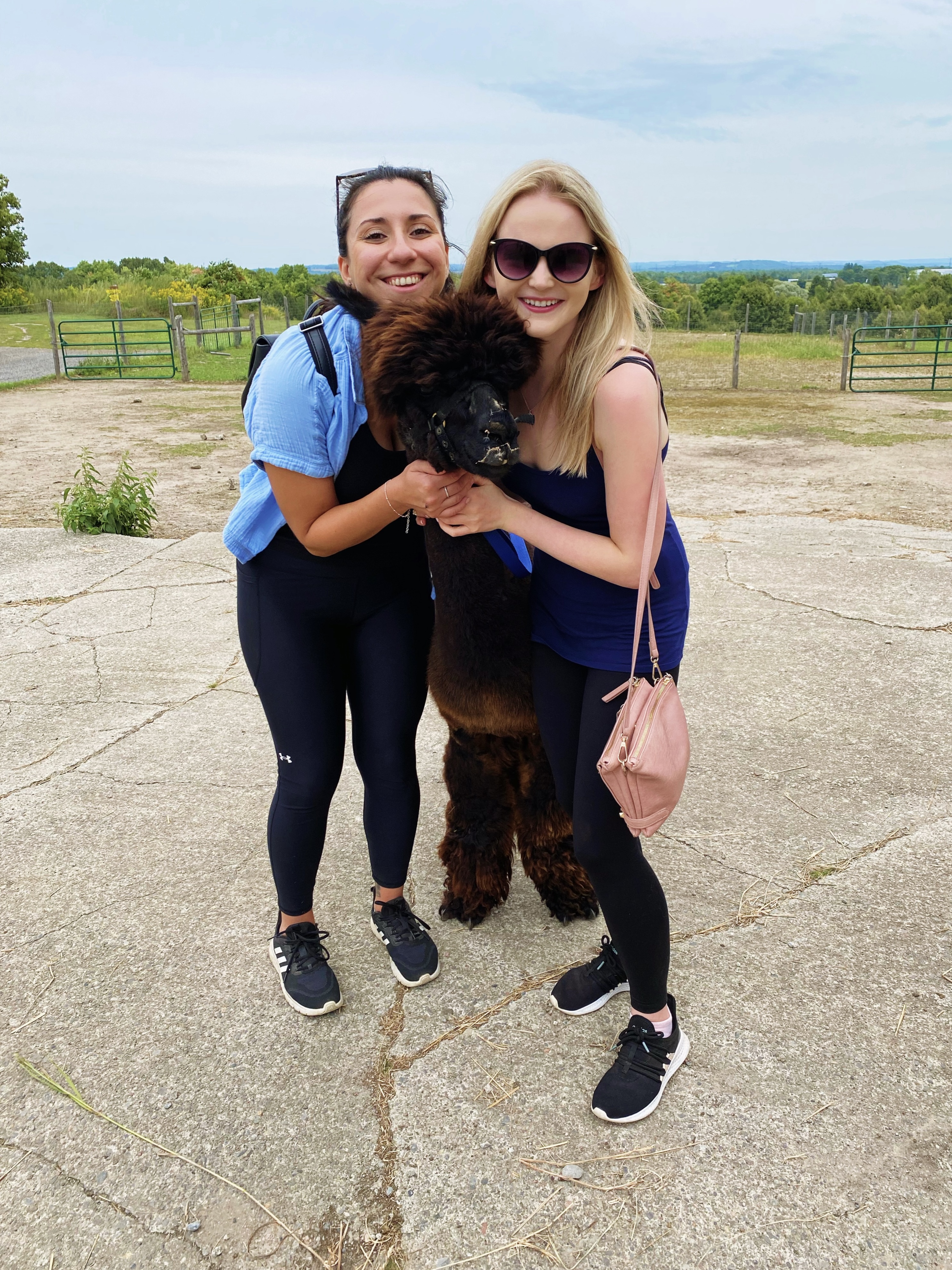 After Jaime got the alpacas leashed up, we were ready to go for our walk. While the leashes make this a more structured experience than the goat ‘walk’, don’t kid yourself into thinking it’s easy! We had a tough time getting going with Shadow, who was more interested in eating than walking (again, I can relate) but eventually we got her into the groove of things, and even managed to go for a little jog with her. If you’re interested in seeing the whole hilarious encounter in action, check out my Instagram reel here.