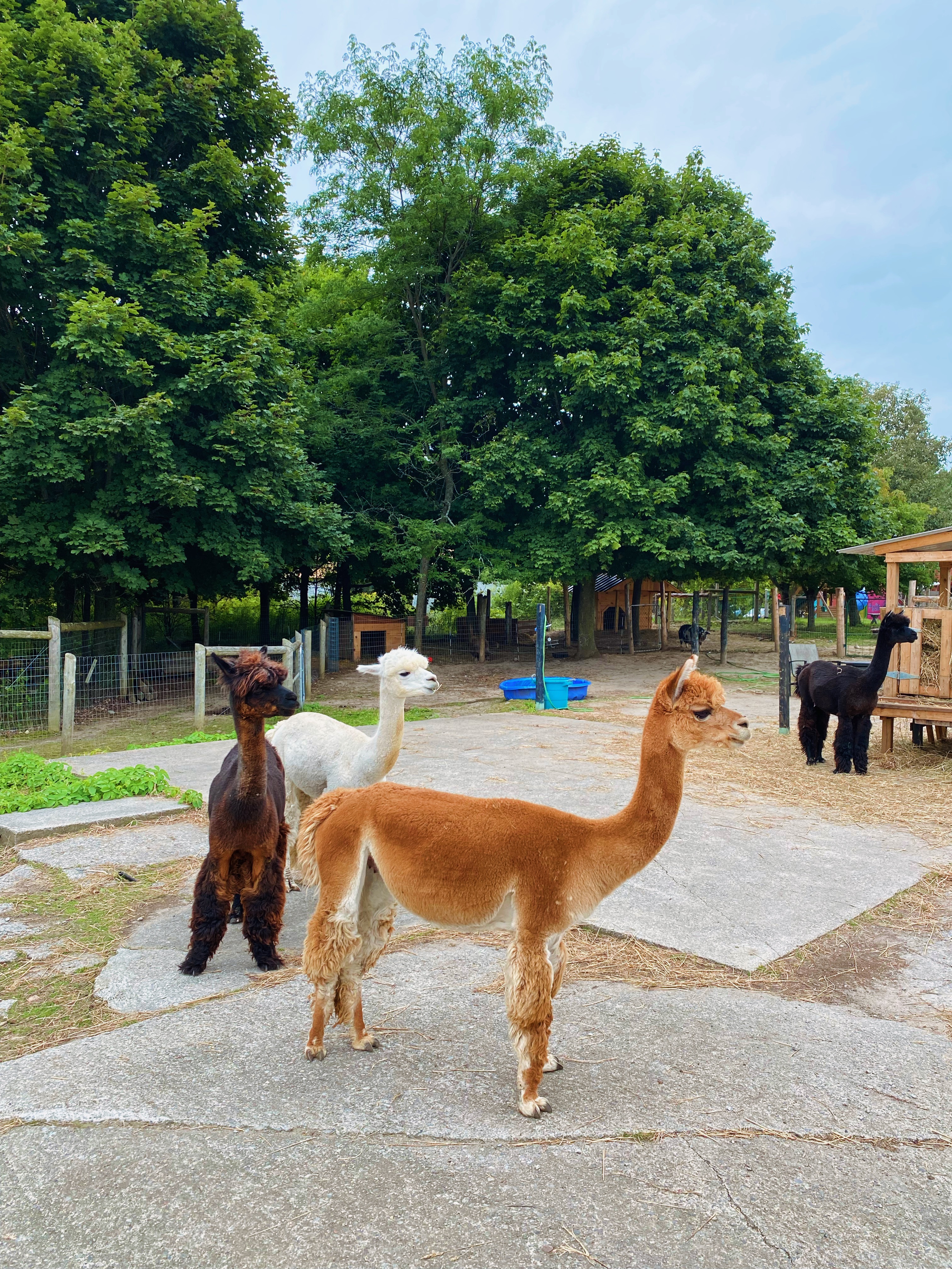 After the Goat Shmurgle wrapped up, we had half an hour of free time before our next experience, the Alpaca Knuffle Shuffle. So we headed over to the chicken coop (hilariously named Cirque De Poulet) and the pig pen to see some of the other animals. The pig pen contained four adorable piglets and one equally cute (if exhausted-looking) mama. It was so fun to watch the piglets play and tumble around with one another. I’ve heard that pigs are very similar to dogs – they’re just as intelligent, playful and social – and I could really see that here. The way the piglets were roughhousing with each another reminded me of puppies at play.
