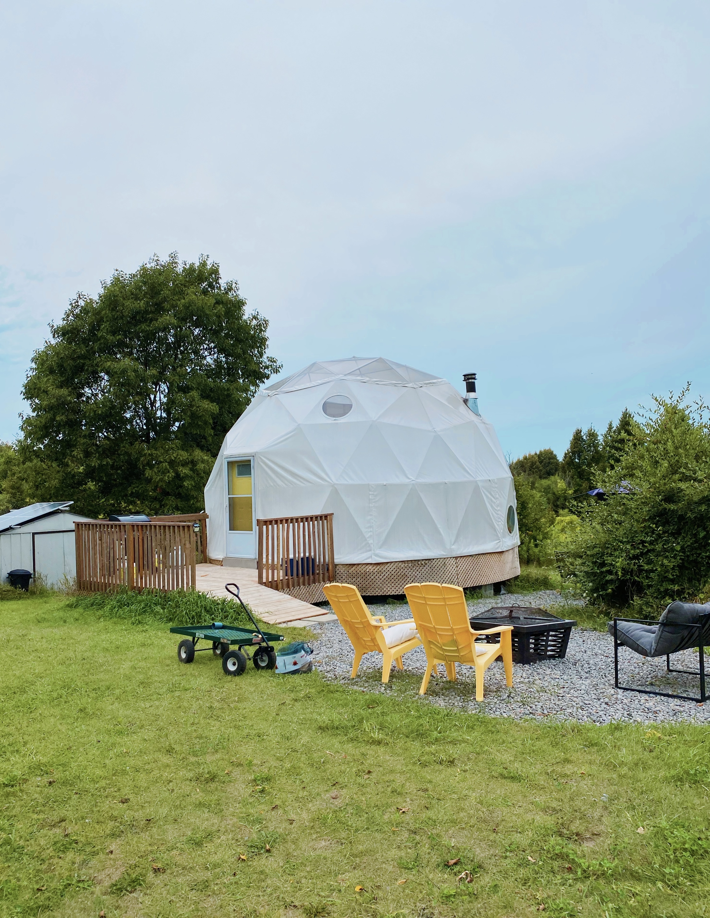 Click here to book one of Haute Goat’s farm experiences (like the Goat Shmurgle or the Alpaca Knuffle Shuffle), and keep an eye on their website to stay up-to-date on seasonal events, such as the upcoming Ghouly Goat Spooktacular. If you want to take it one step further, Haute Goat also offers overnight sleepover experiences where you can spend the night at the farm! Here’s one of the sleepover domes we spotted on our walk: