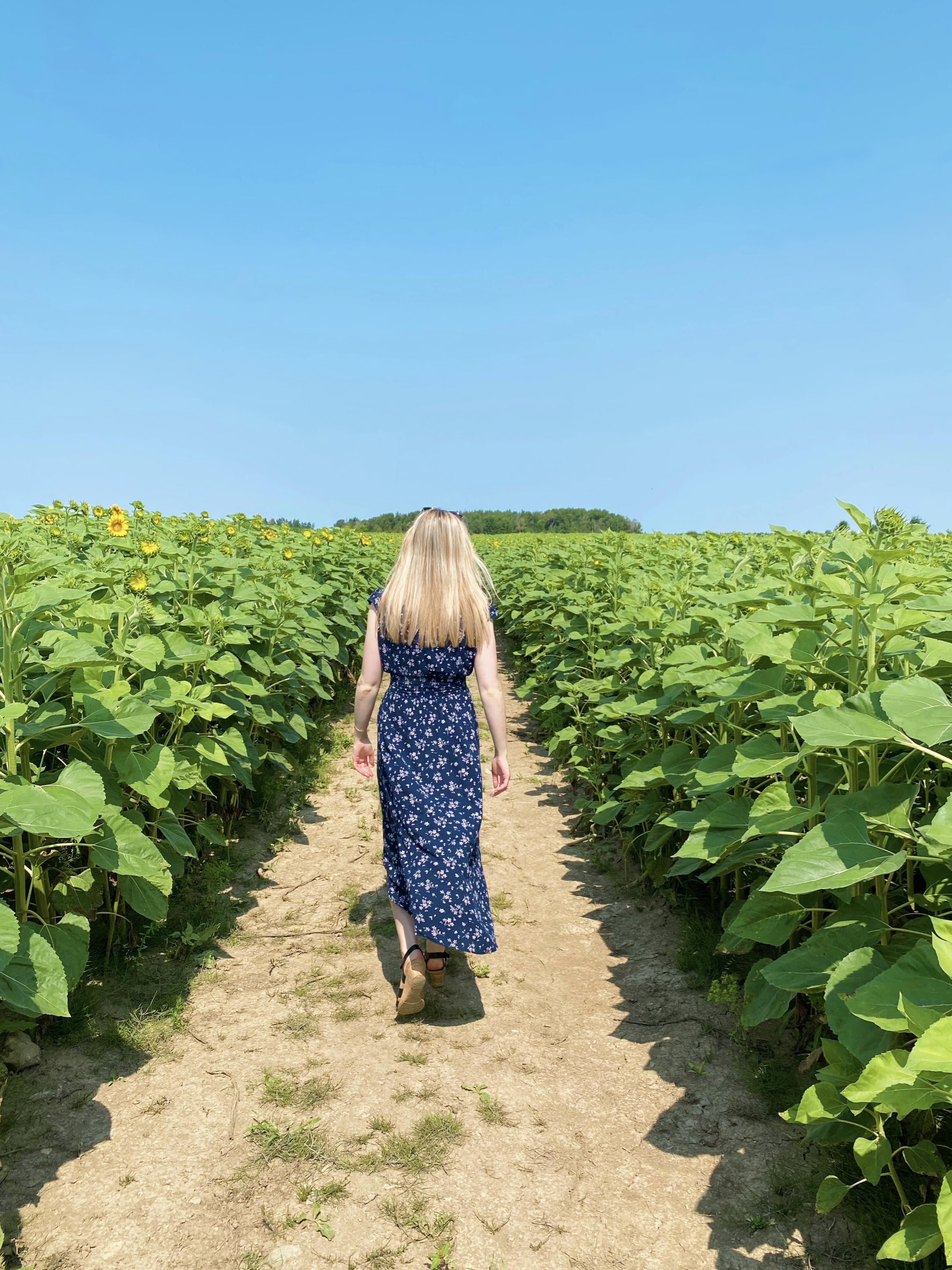 Located in East Garafraxa in Dufferin County, just an hour north of the GTA, Hereward Farms is a family-run lavender and sunflower farm with a commitment to sustainable farming practices. The farm was founded by entrepreneur Julie Thurgood-Burnett in 2020, who – at the time – knew nothing about lavender nor farming. On a whim, she planted 40 lavender plants in her backyard, and started making and selling her own lavender-infused skincare products. The business took off, and Julie and her husband Stephen decided to order more lavender plants and expand the farm. Today, the 250-acre farm is home to no fewer than 6,000 lavender plants and 400,000 sunflowers. Talk about a fruitful pandemic project! (In contrast, all I ended up with is a multitude of uneaten jam jars from my COVID canning phase… but that’s another story.)