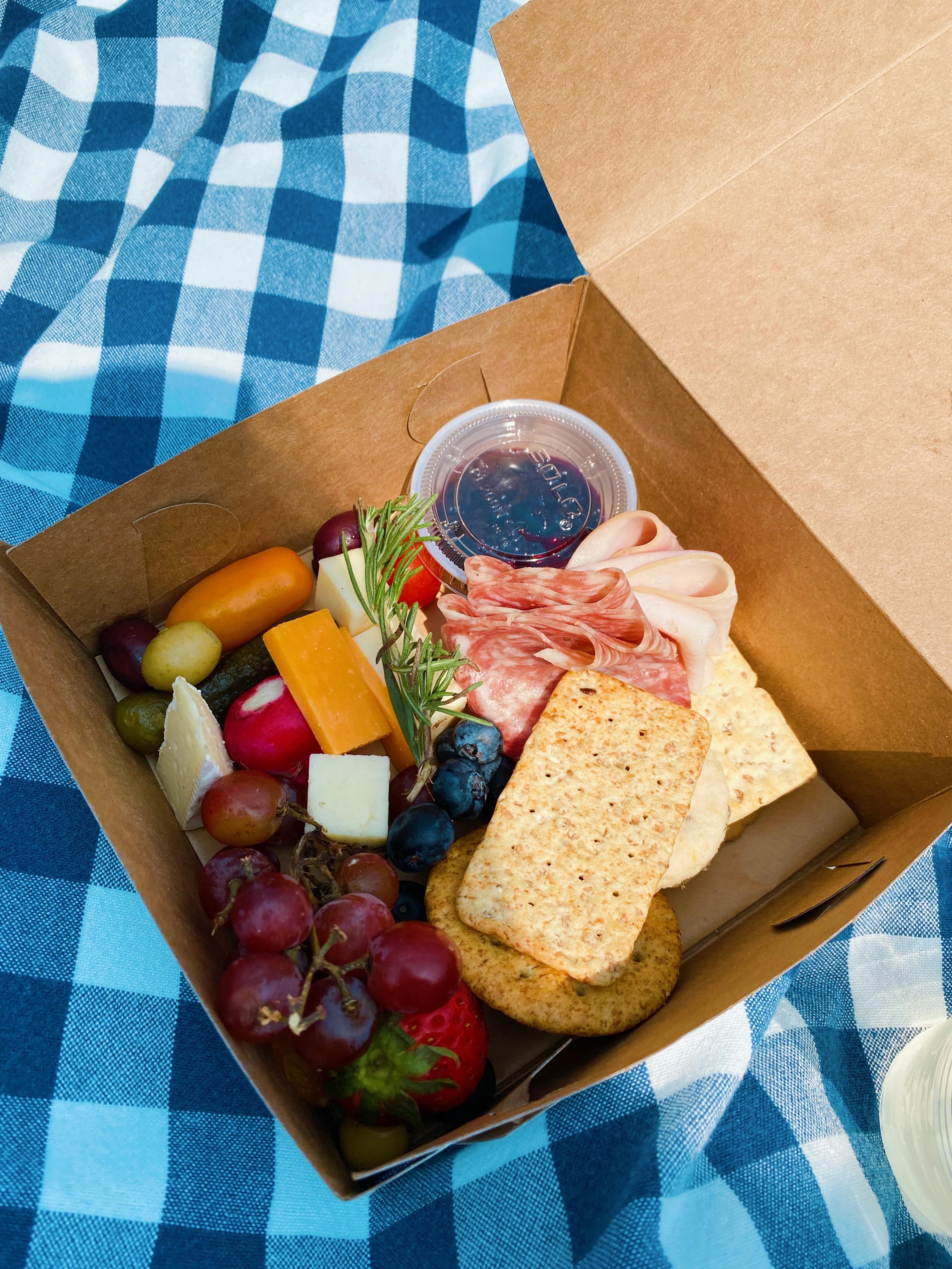 We spread our picnic blanket right in the lavender field, and tucked into our delicious charcuterie boxes. Inside the boxes were cold cuts, crackers, various cheeses, olives, blueberry-lavender jam, fresh fruits and veggies, and the most delicious shortbread cookies – the perfect sweet ending to our meal. They were also deceptively substantial – we were both quite full afterwards!