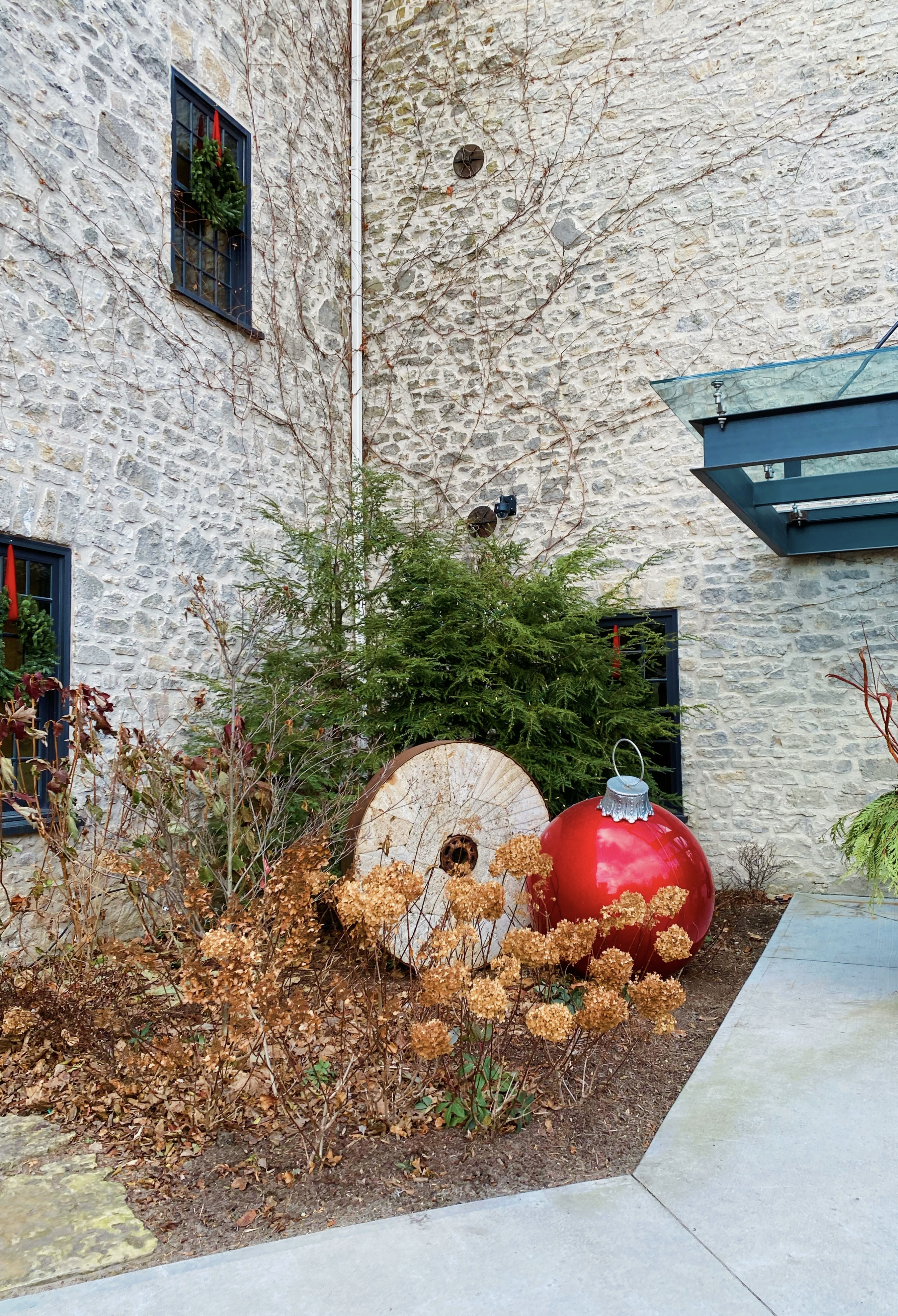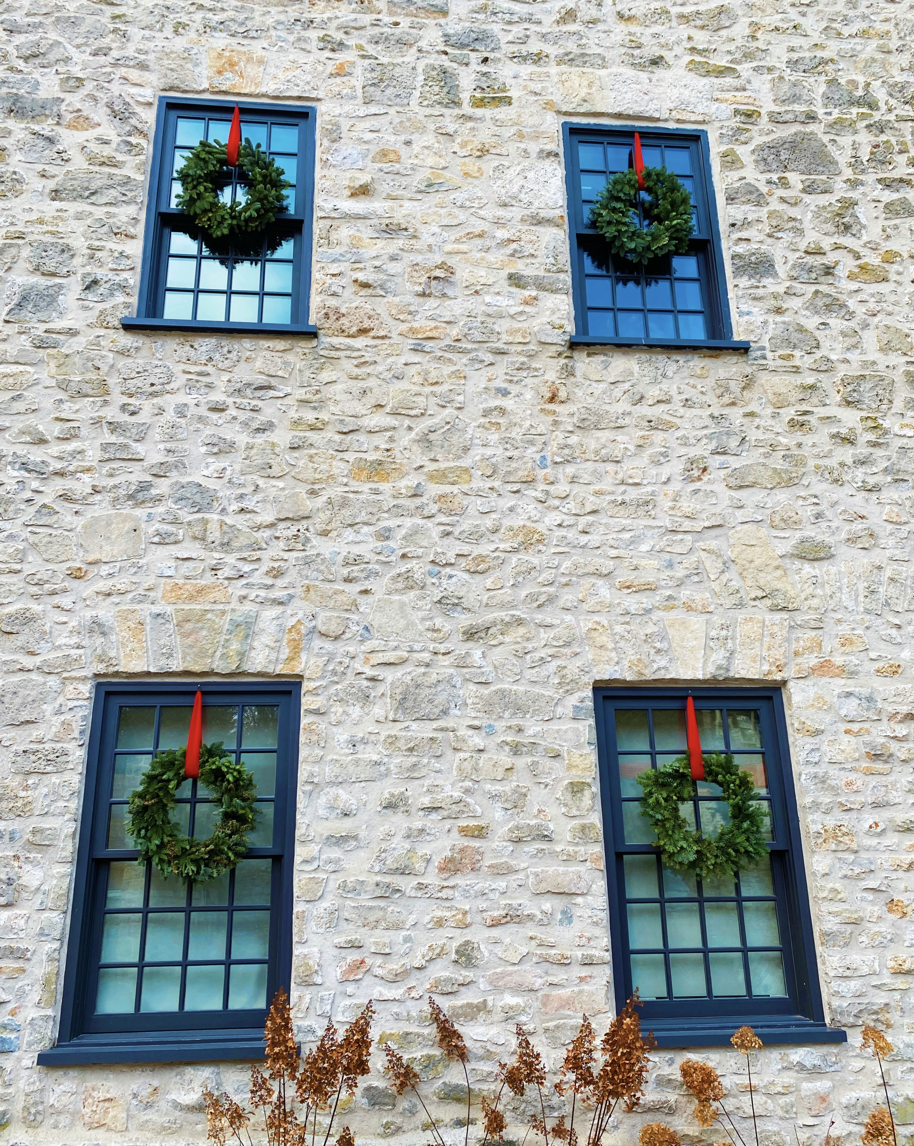 The larger-than-life ornament sculptures and wreath-bedecked windows at the Elora Mill. Don’t forget to take a peek at the Elora Gorge while you’re there! The hotel is famous for their restaurant which has some incredible views of the river.