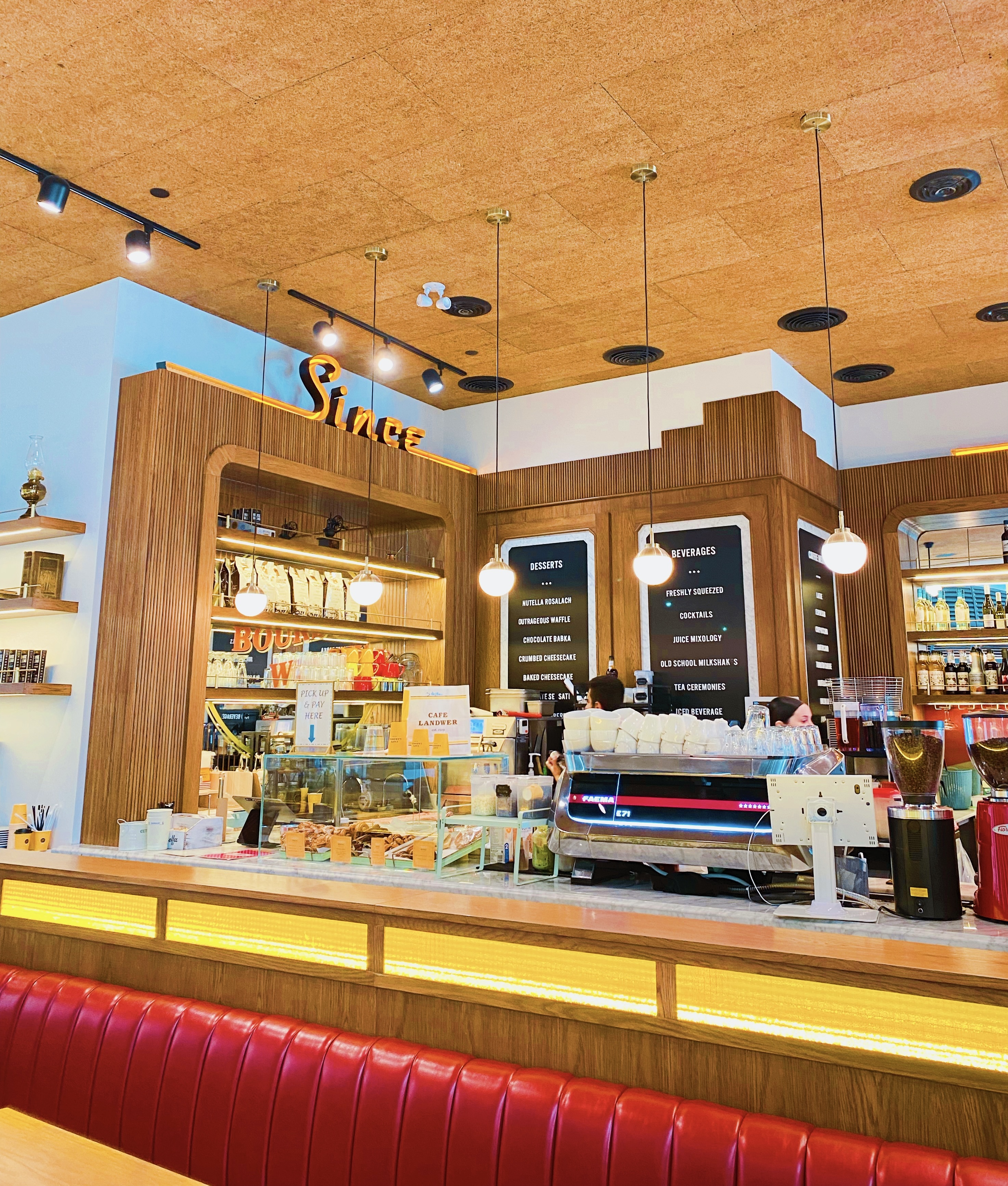 Café Landwer has six locations in Ontario (five in Toronto) but I’d only ever been to the one at University and Adelaide. The Yorkdale location has a similar vibe in terms of atmosphere and décor: it feels like a sleek, contemporary take on a retro diner. The wood-paneled walls are adorned with vintage advertisements and neon art, and there are several references to the café’s long, storied history. Café Landwer’s first location in Berlin was opened by Moshe Landwer and his family in 1919. When the Landwers fled to Tel Aviv after the Nazis rose to power in Germany, the family opened Israel’s first coffee roastery. Clearly they were successful, because today, Café Landwer has several locations around the world, including 60 in Israel, four in the U.S. and six in Canada (the first of which opened in 2017).