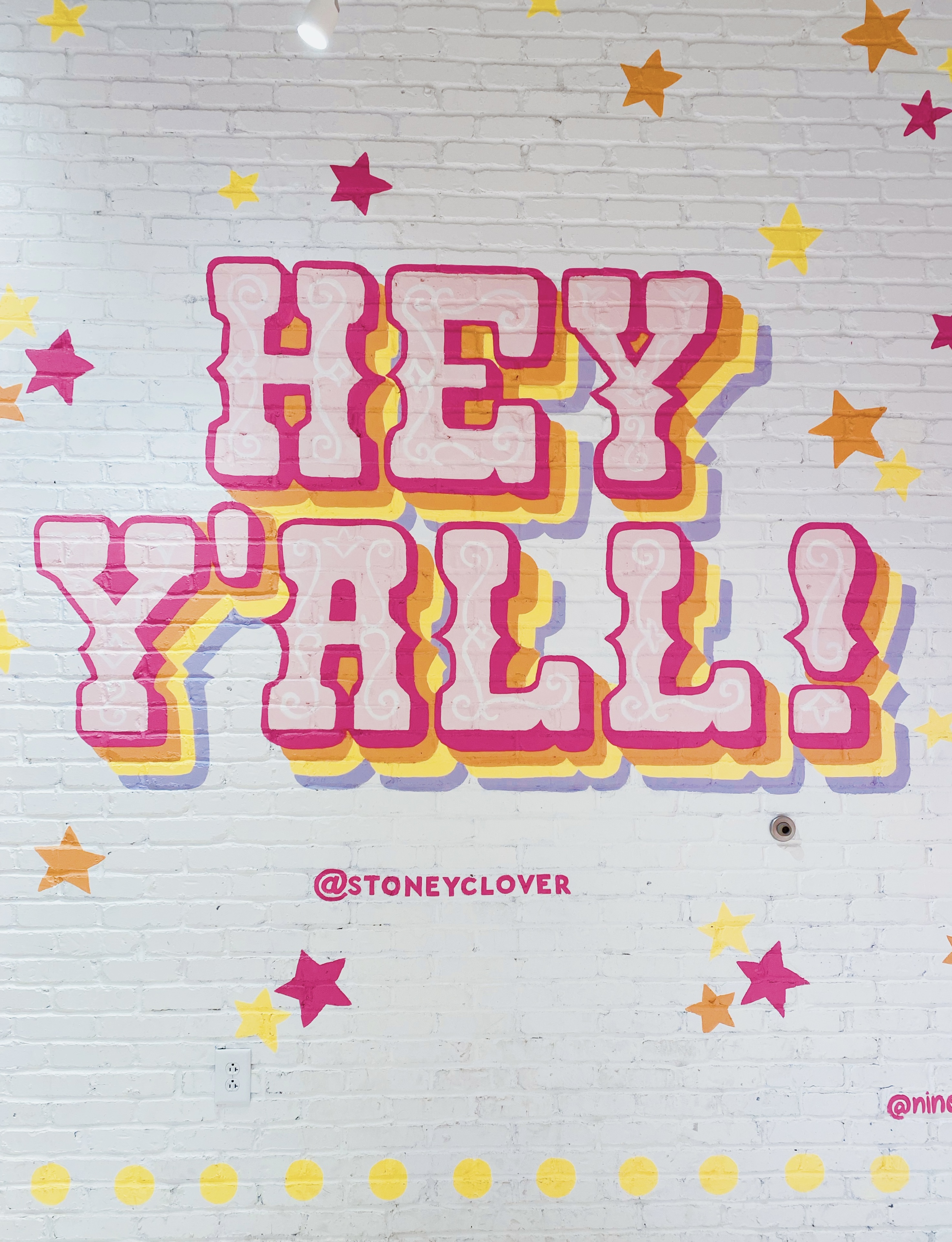 Murals: Nashville is home to a vast number of Instagram-worthy murals, which only makes sense. After all, it’s such a popular destination for bachelorette parties and girls’ trips, and what better way to commemorate a girls’ trip than with an epic selfie? You can head to Nashville’s official tourism website for a full guide to the city’s street art, but some favourites we saw include the candy hearts mural at Finnleys in the Gulch (601 8th Ave S), the Love Y’all mural at Pencil & Paper Co. (2028 Lindell Ave), the Hey Y’all mural inside Stoney Clover Lane (2707 12th Ave S) and the I Believe In Nashville mural opposite Draper James (2608 12th Ave S).
