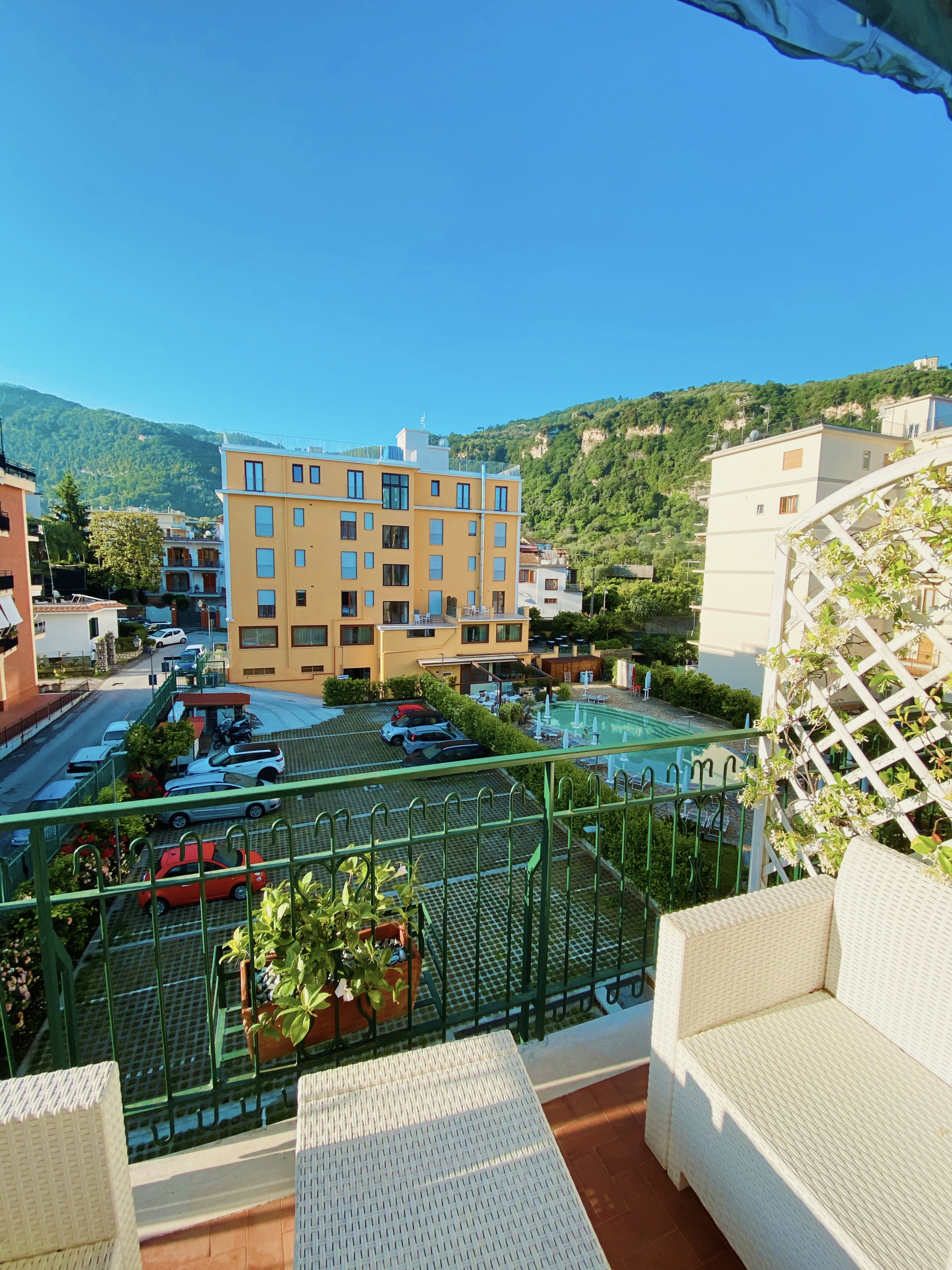 We booked Les Suites des Tout le Monde for our Sorrento accommodations. The suites are located on the third floor of an apartment building, which I think is exclusively used for Airbnb-style rentals, as each floor seemed to be home to a different ‘hotel’. We booked the queen room with a pool view. Here’s my honest review of the room, starting with the pros: